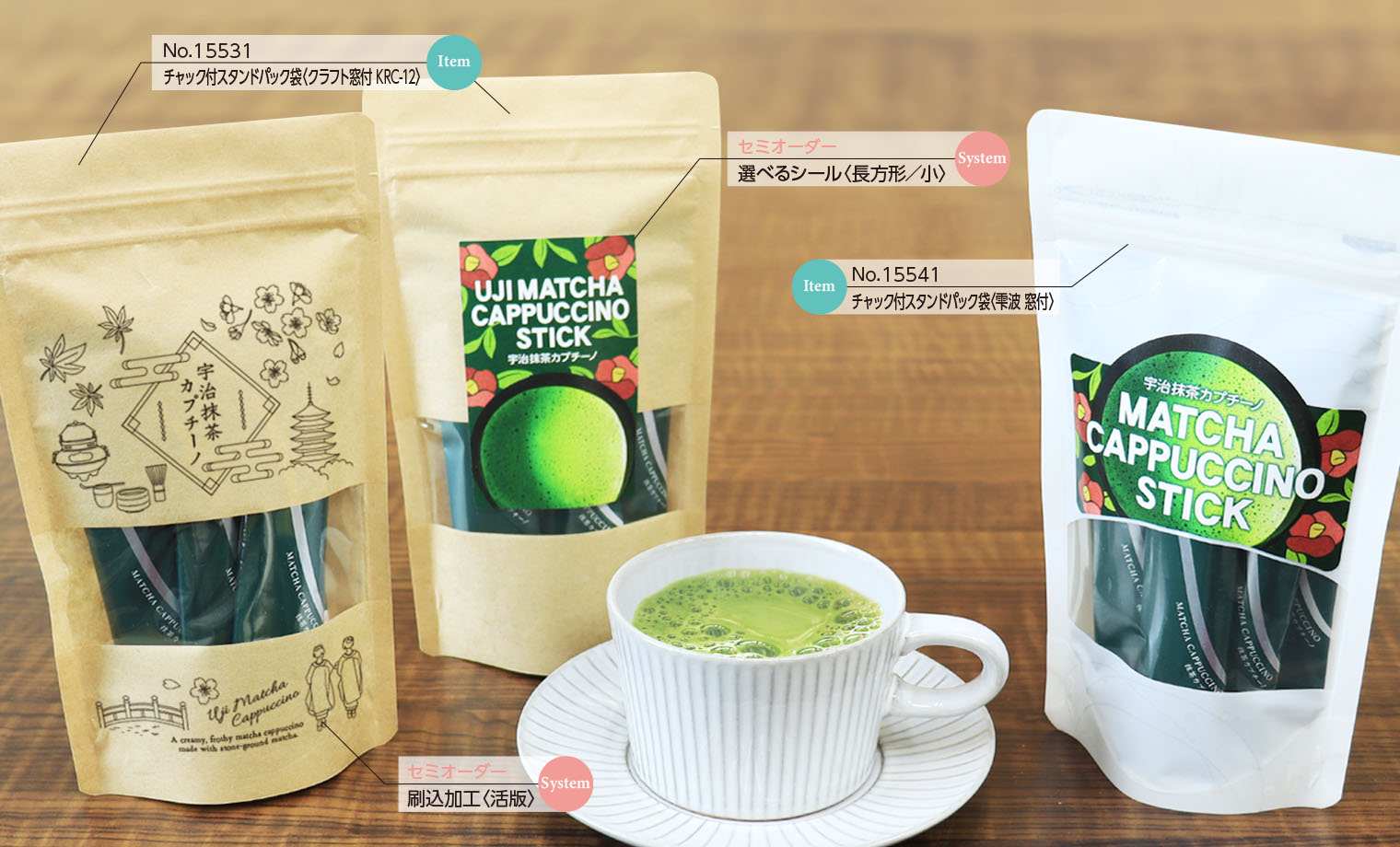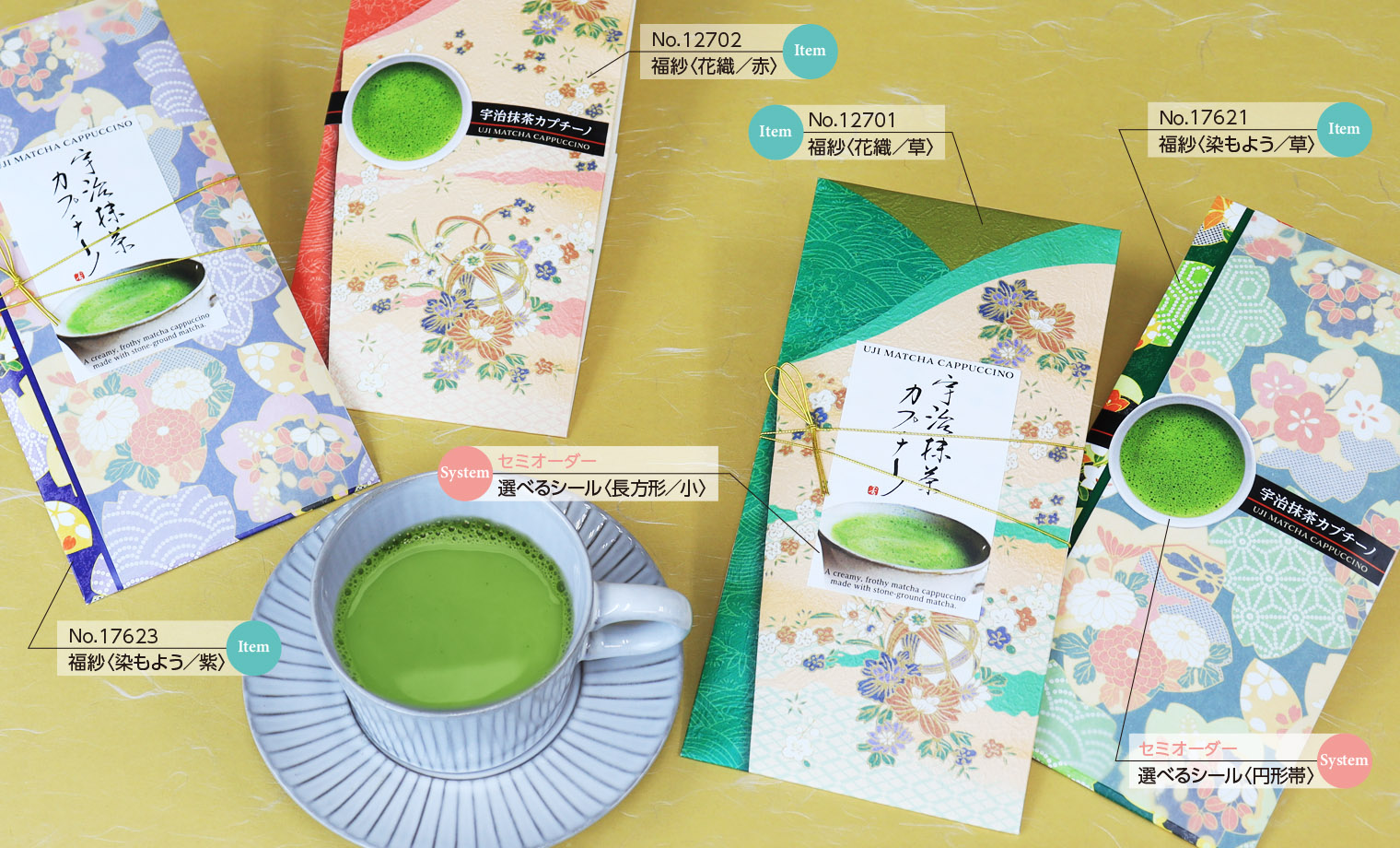 スタンドパック袋、缶や和装(福紗)、6本入専用ケースなども既製品としてご用意。