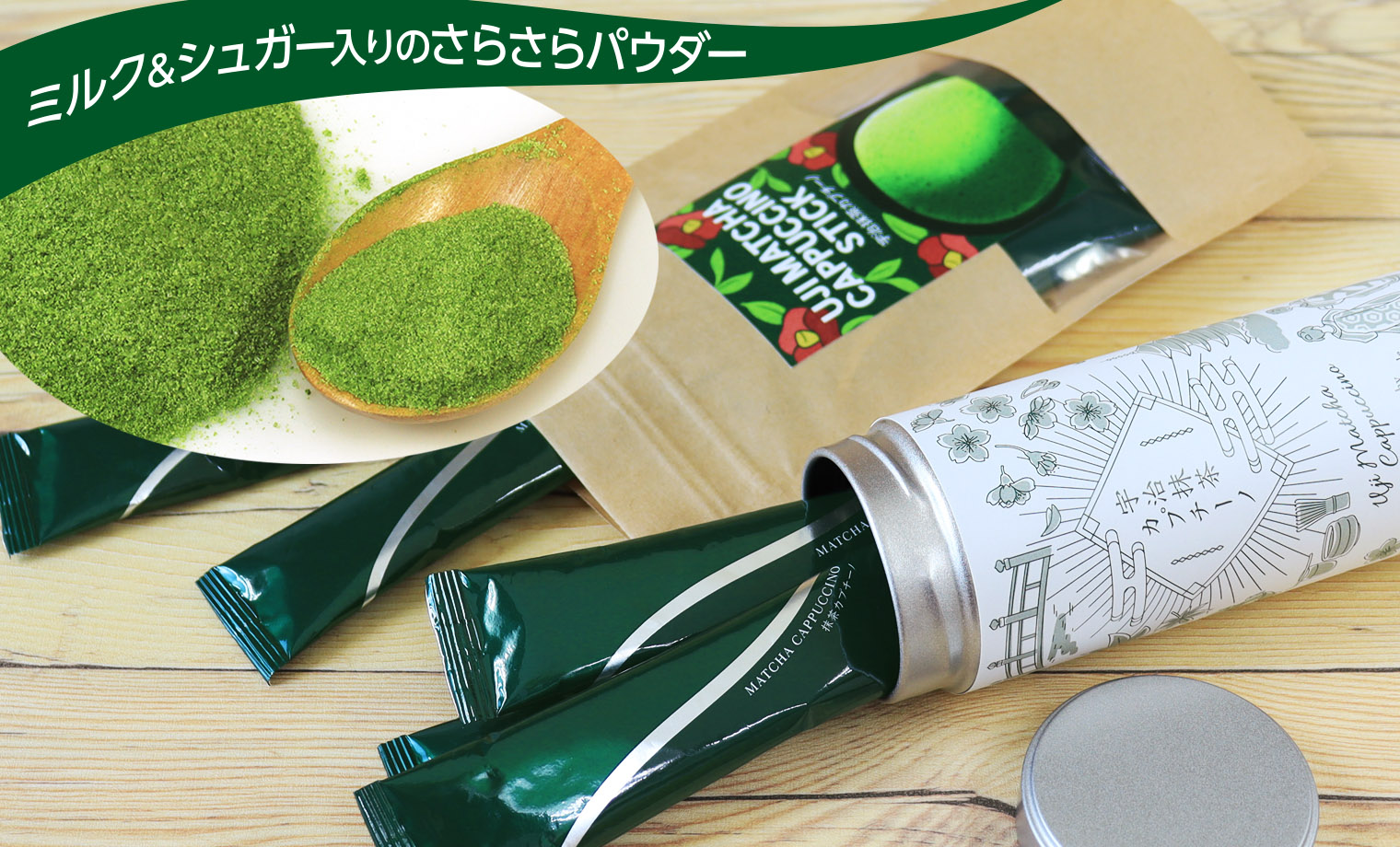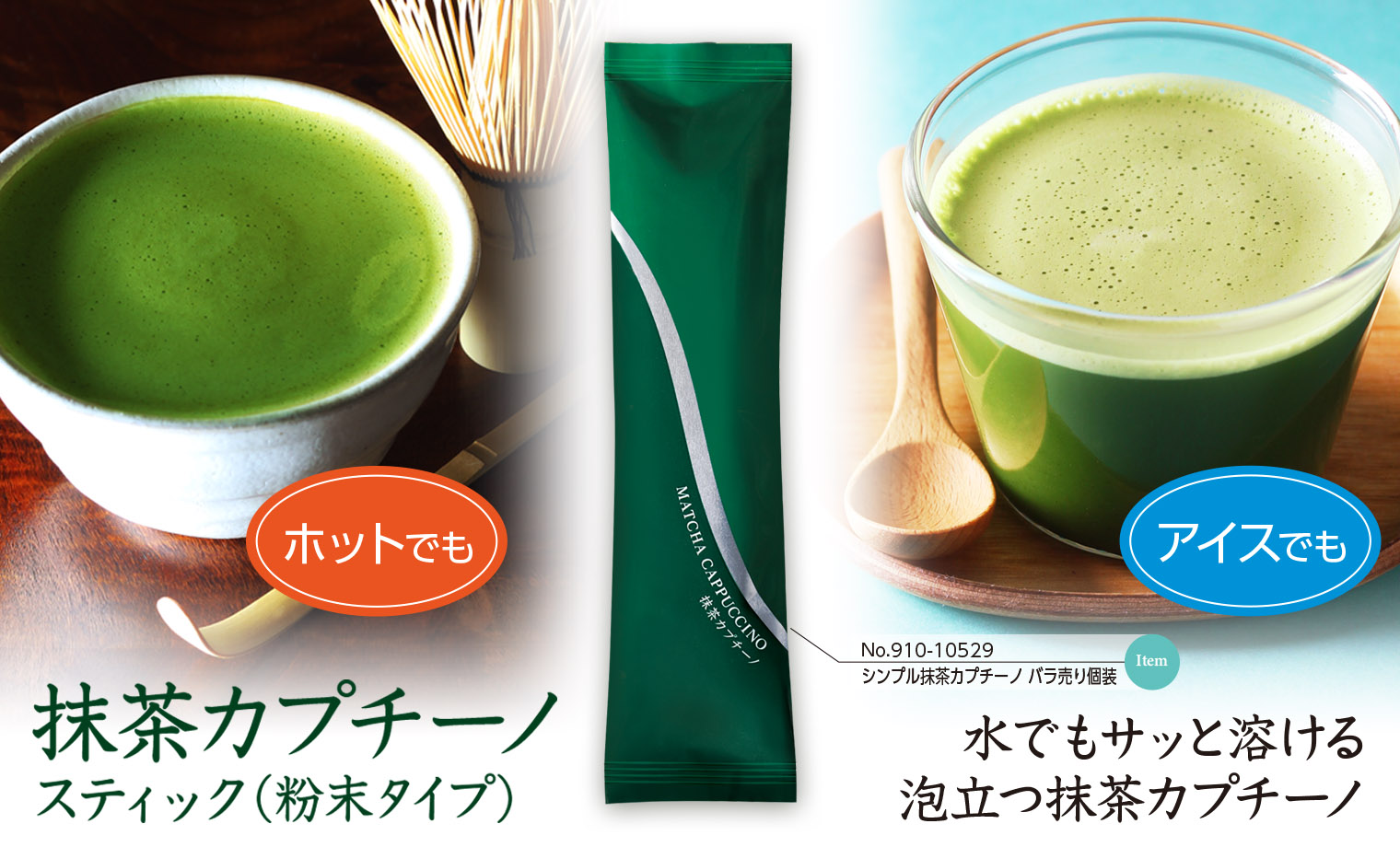 クリーミーな泡立ちの抹茶カプチーノ(粉末スティック)。