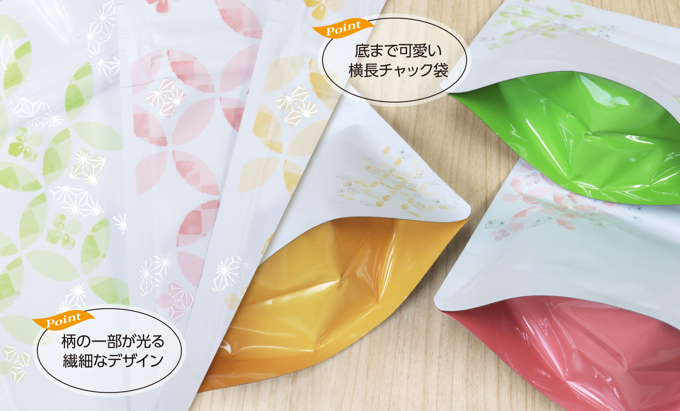 「宝花」は、人気の横長形タイプのチャック付き袋で、