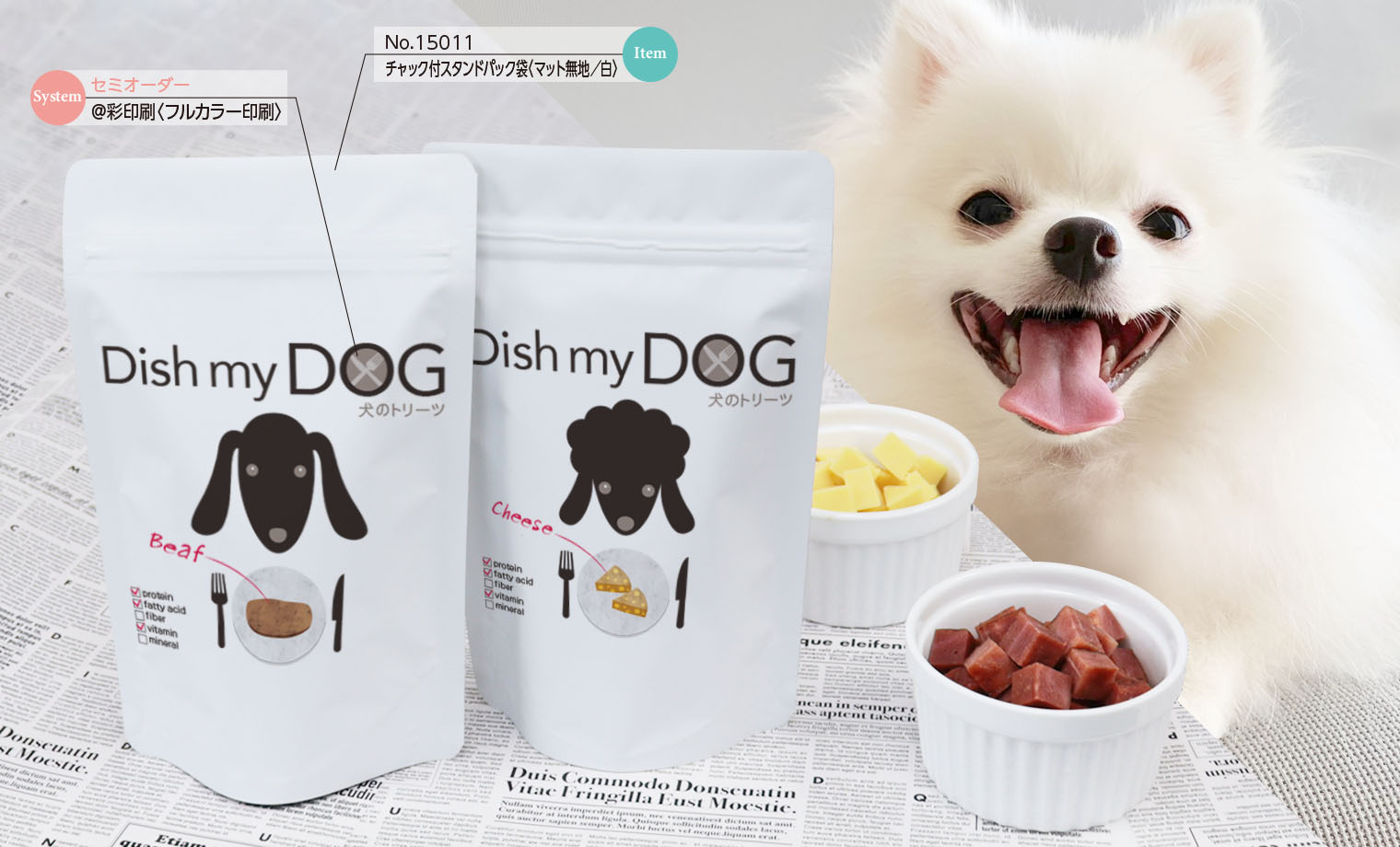 こだわりのペットフードにはオリジナルデザインでお客様の記憶に残るパッケージ作りを。
