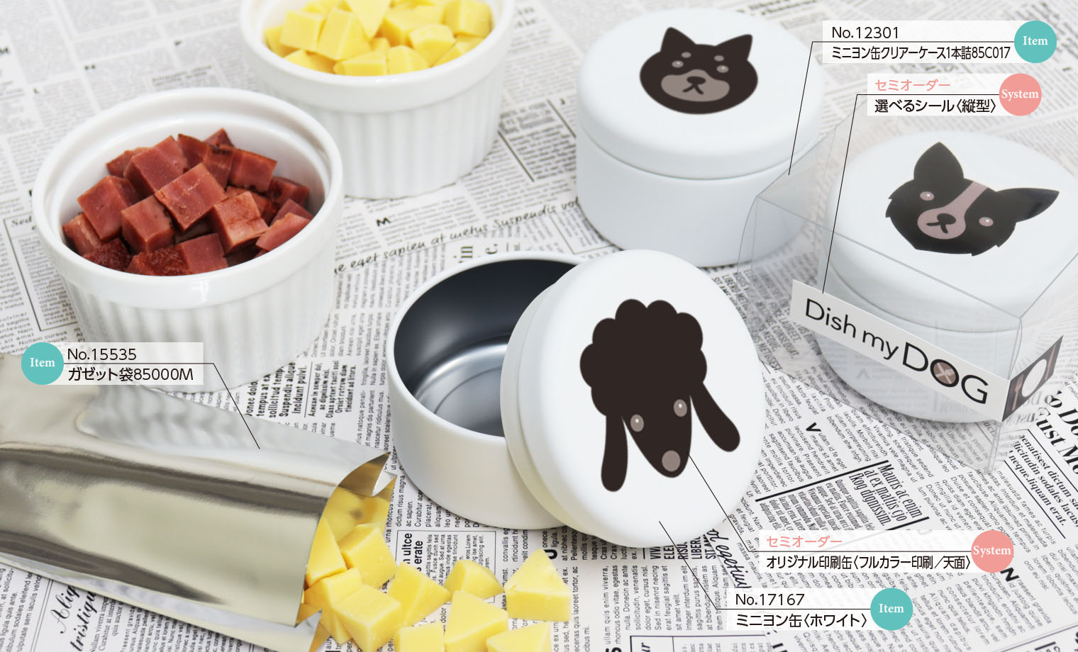 アイコンとなるわんちゃんのイラストをミニヨン缶に印刷すれば