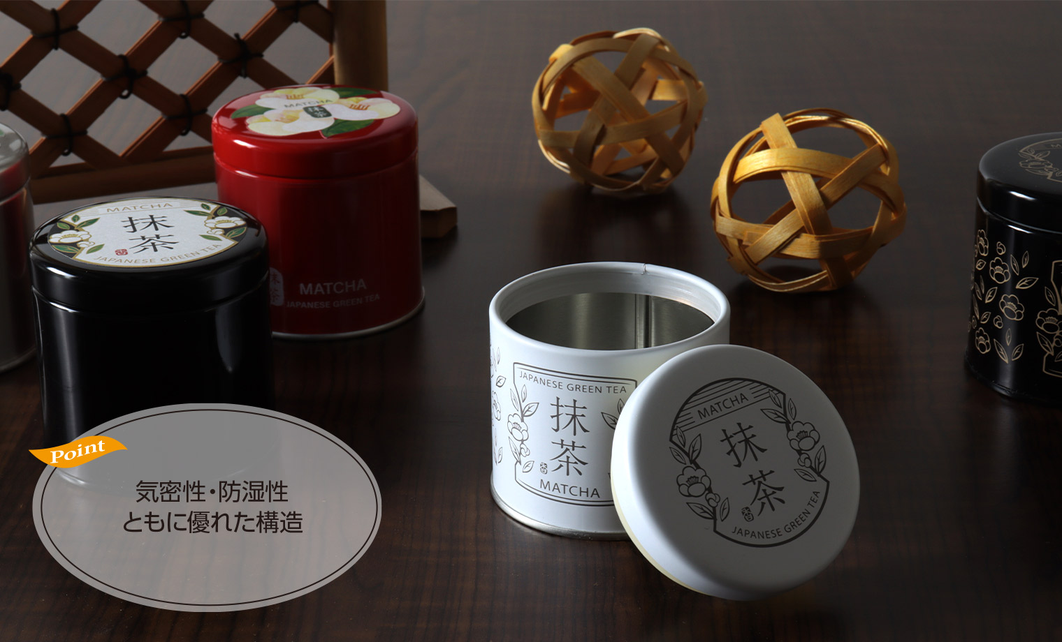 防湿構造の密閉タイプになっており、抹茶缶に最適です。