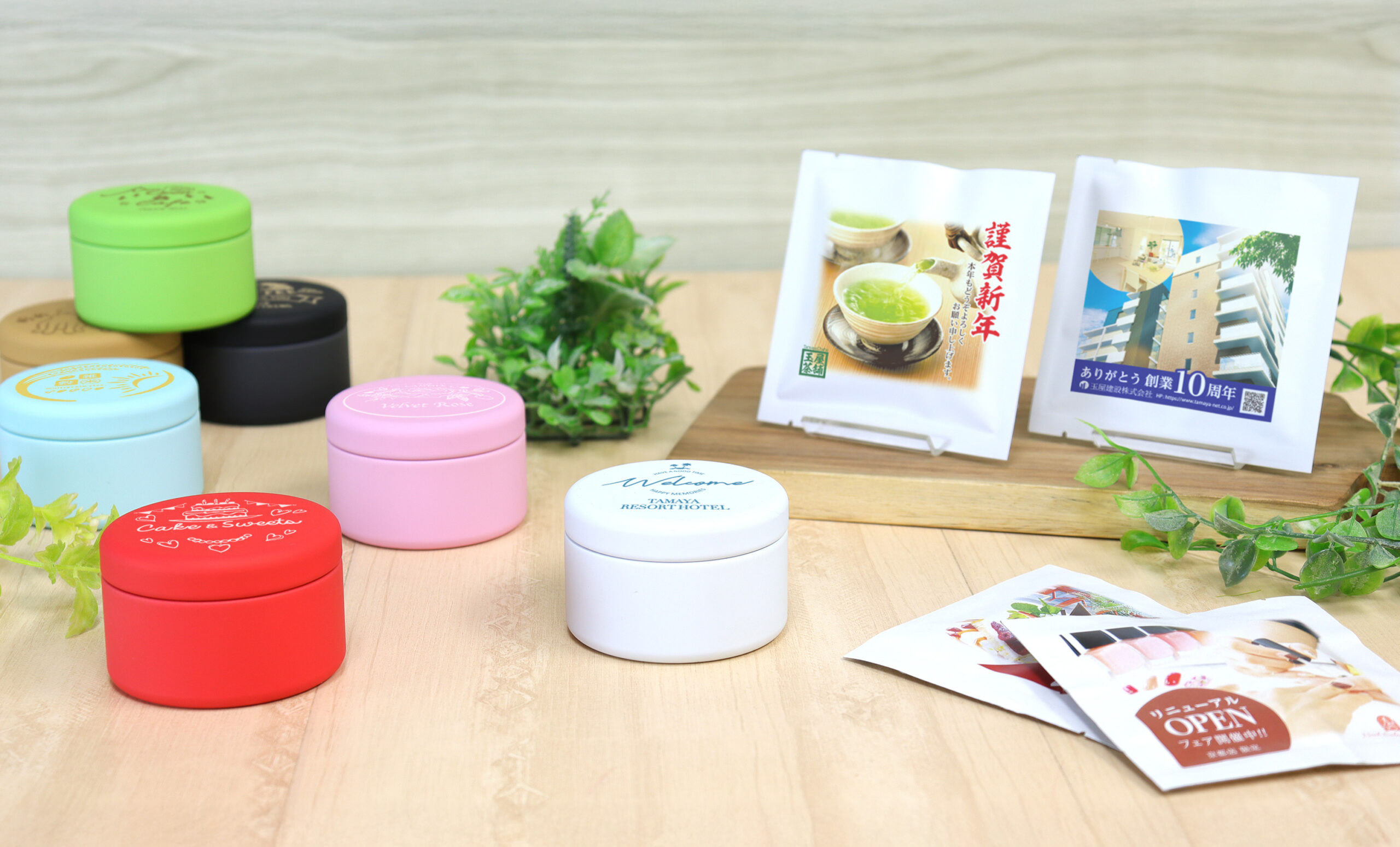 ノベルティに最適な一煎パック(三方袋ミニ)。