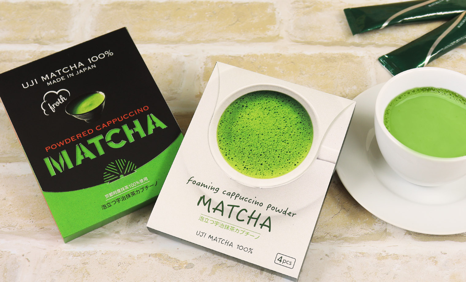 クリーミーな泡立ちの抹茶カプチーノ(粉末スティック)。