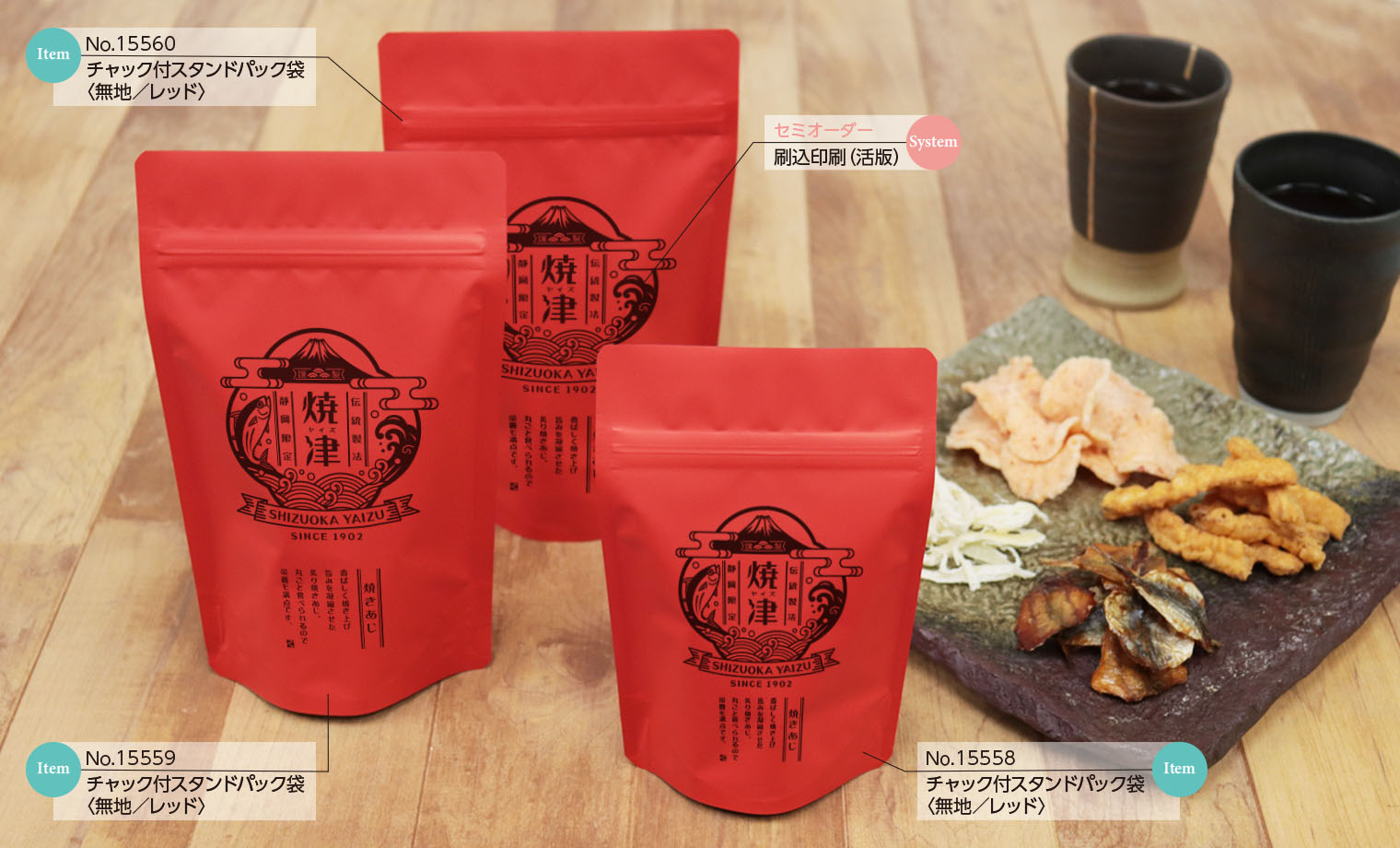 【No.15558】チャック付スタンドパック袋<無地/レッド> ¥32