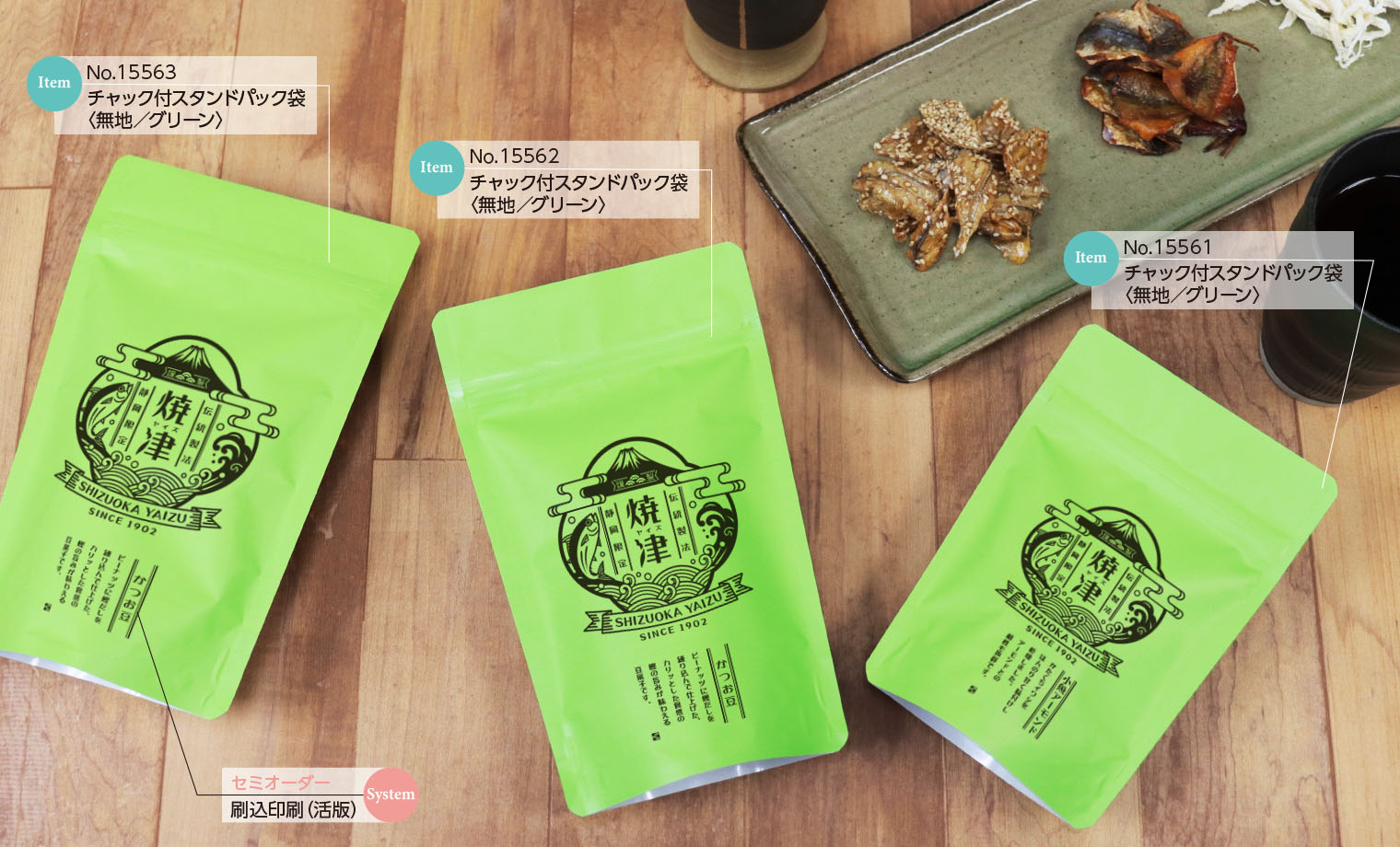 【No.15563】チャック付スタンドパック袋<無地/グリーン> ¥40