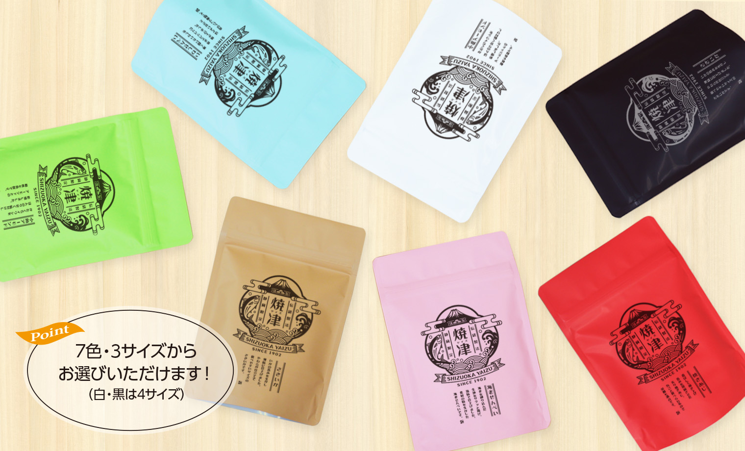 袋の色は7色、3サイズから選んで、多品種パッケージ展開が可能です!